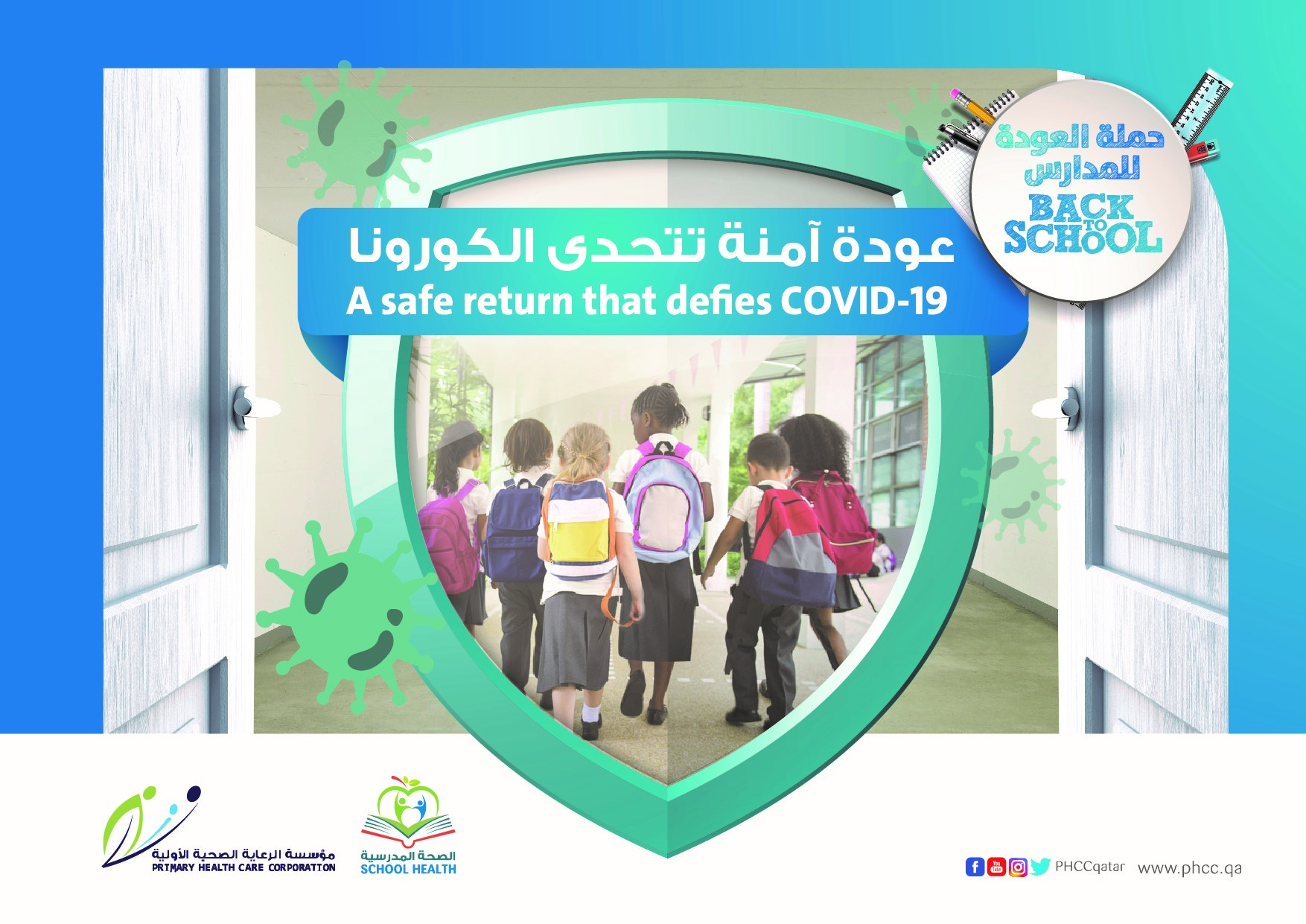 PHCC launched a three-weeks campaign, with the aim of preventing the spread of infection among students, staff, and parents. With the beginning of the new academic year, and with the aim to intensify efforts to address the COVID-19 pandemic, PHCC School Health department launches a Safe Return to School campaign under the slogan ‘Defying COVID-19 With a Safe Return’, targeting all public schools in the State of Qatar.